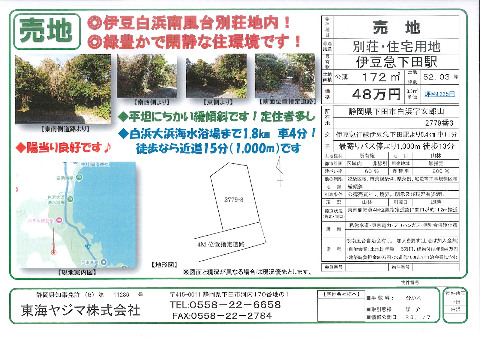 伊豆白浜南風台別荘地内に位置する、緑に囲まれた静かな住環境の売地です。