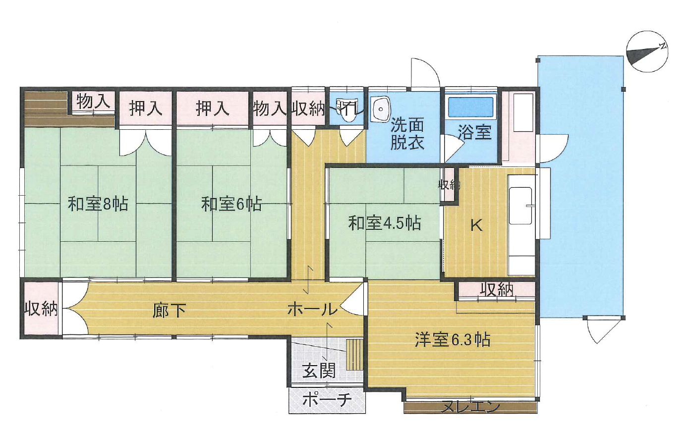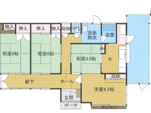 和室8畳 和室6畳 和室4.5畳 洋室6.3畳 K |