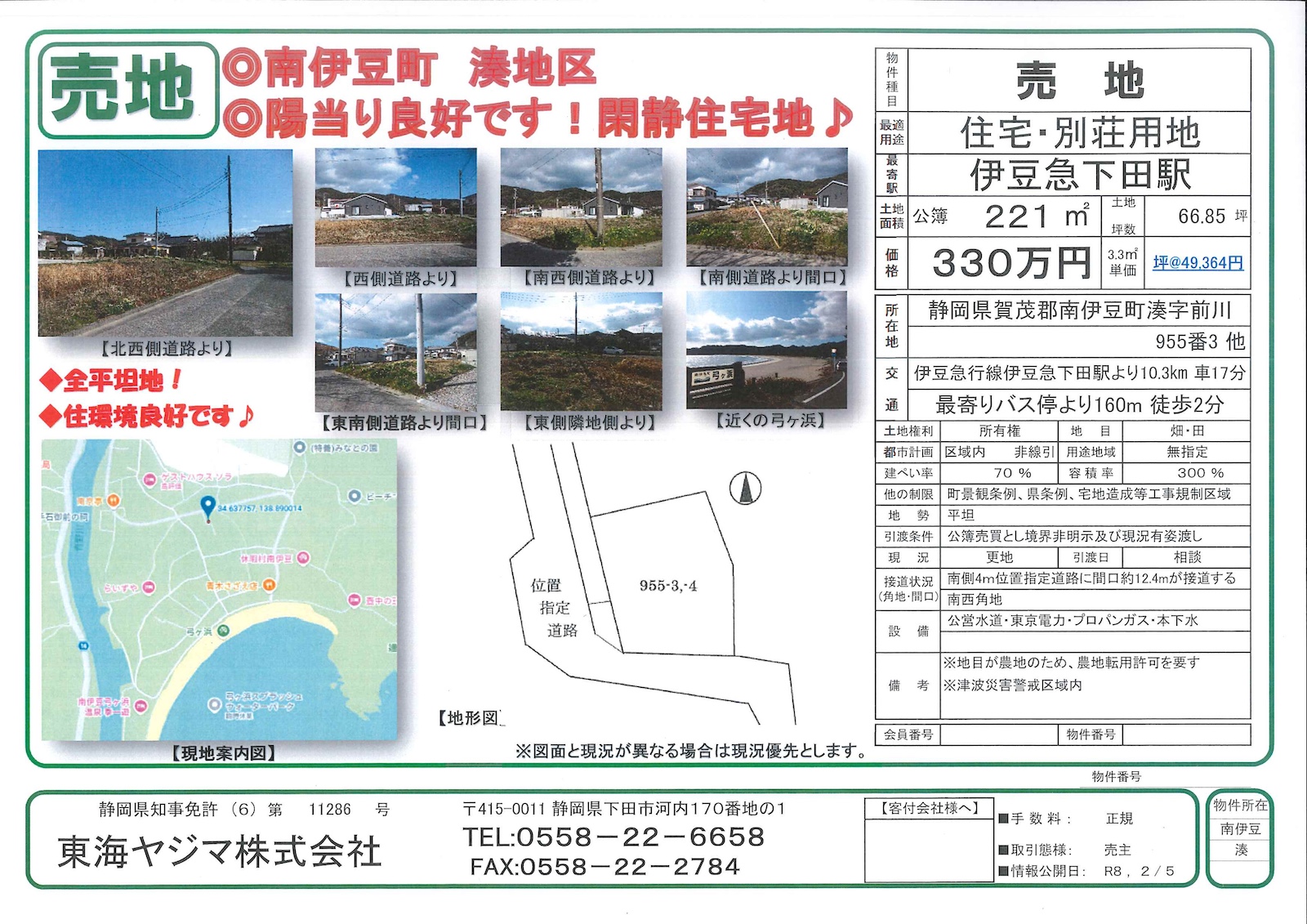 自然と利便性のバランスが取れた南伊豆らしい土地です。