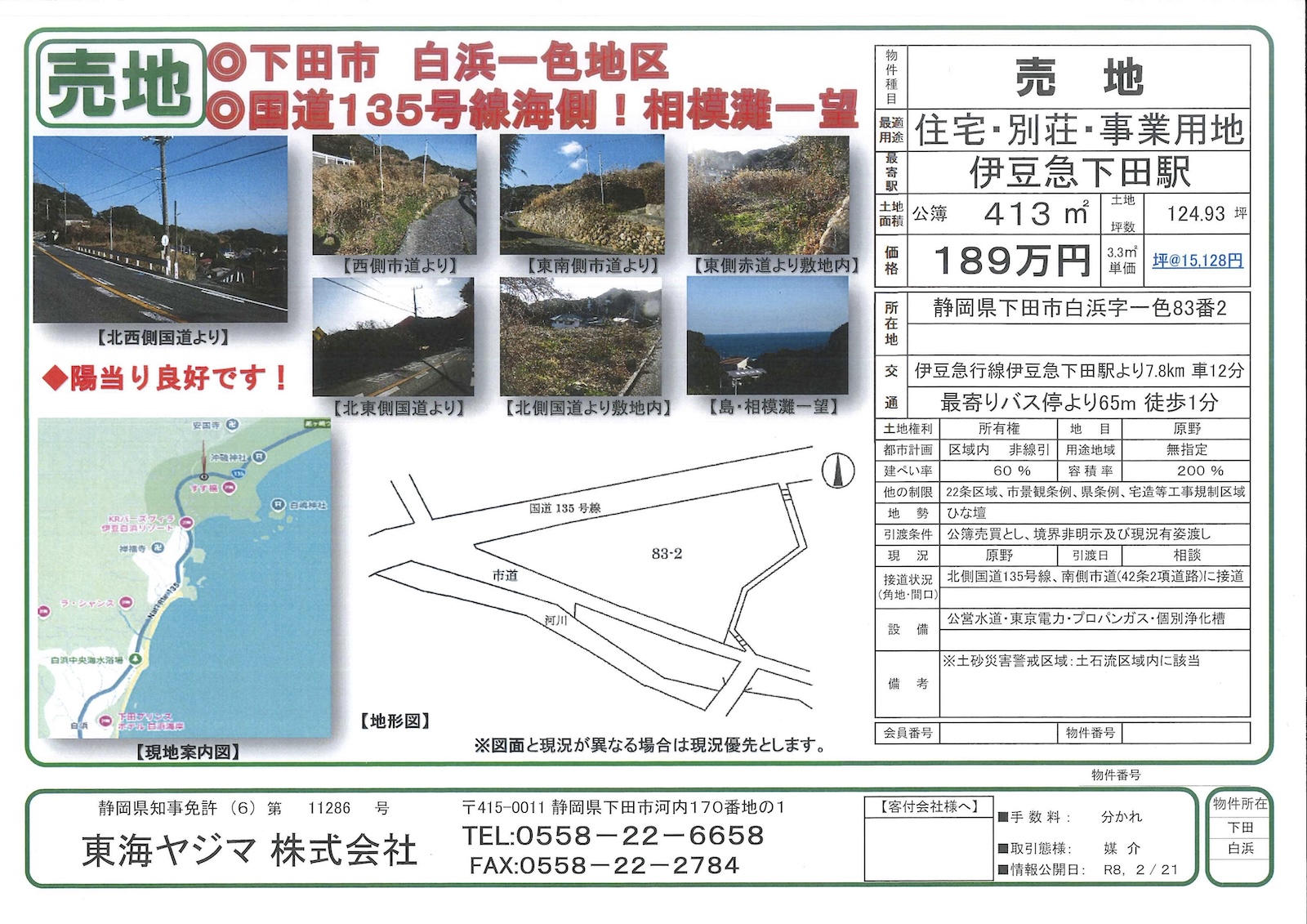国道135号線海側・陽当たり良好